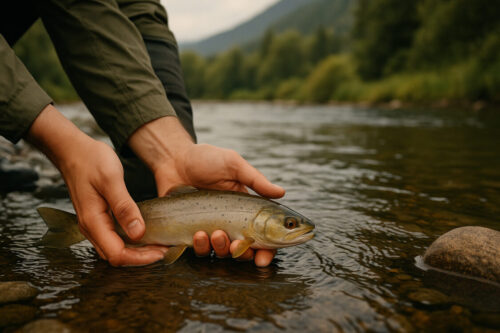 リリースするときは、魚への負担を減らすことが大切です。水面から長く出さず、濡れた手やリリース用ネットを使って触れることで、魚の体力の消費を軽減できます。