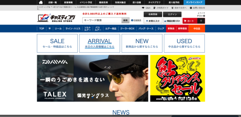 キャスティングは全国展開している大手釣具チェーンで、オンラインショップも非常に充実しているお店です。