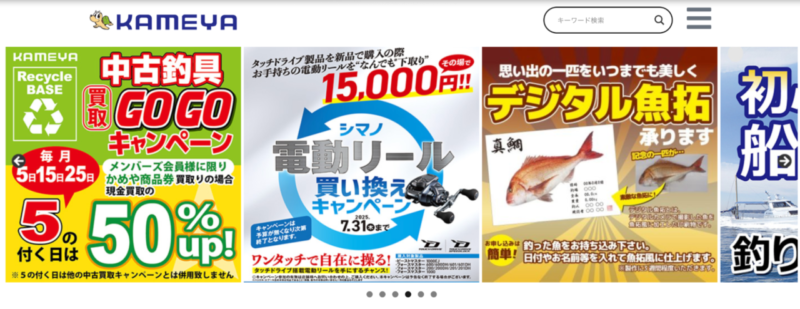 かめや釣具は、全国に実店舗を展開する老舗の釣具チェーンです。